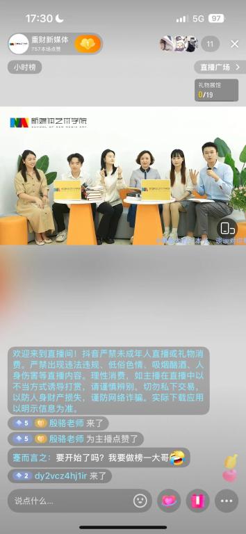 "重财新媒体抖音号的正式运营是学院针对数字传媒人才分层分类培养的重要举措,是为培养卓越传媒人才而积极开拓的新型教学实践平台。"活动总策划李蓉副院长表示。这场书香直播盛宴不仅点燃了校园阅读热情,更彰显了新媒体艺术学院以市场需求为导向,深入贯彻OBE理念的教学改革的决心与自觉。