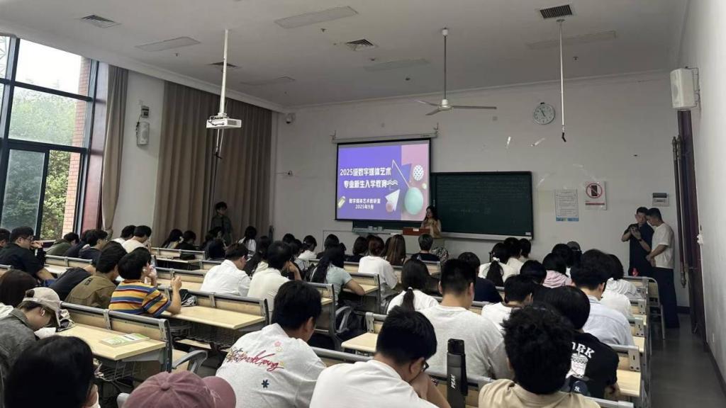 为使新生全面深入地了解专业特色与发展前景,9月23日下午,我院数字媒体艺术专业教研室在1306教室举办了2025级新生专业认知教育活动。2025级数字媒体艺术专业一、二班,Z2023级数字媒体艺术专业三班全体新生以及教研室全体老师参加本次活动,现场气氛热烈。