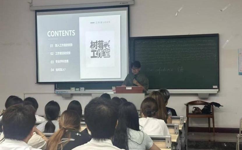 数字媒体工作室负责人贺晨阳同学作为学生代表,向新生们展示了树莓文化创意工作室近年来的优秀作品与实践成果,分享了学习经验与团队合作心得。他鼓励学弟学妹积极参与项目实践,提前规划职业路径。