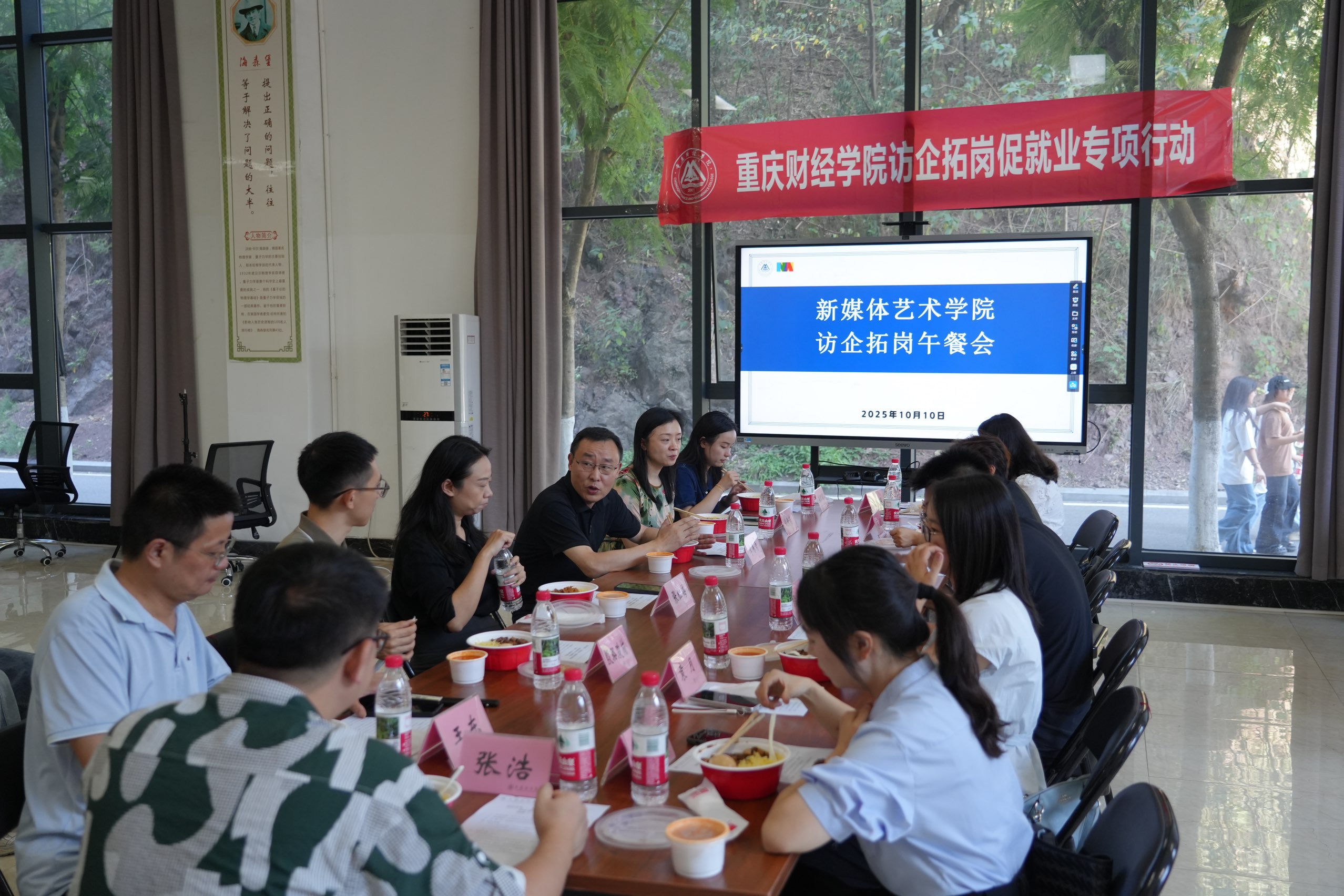 为深化校企协同育人机制,探索产教融合新路径,2025年10月10日中午,我校新媒体艺术学院举办校企合作午餐会。副校长李春雷、校长助理兼学院院长张红梅、党总支书记倪倩茜、副院长殷骆俊楠等领导,与来自重庆亿量传媒有限公司、金夫人儿童天堂有限公司等6家优质企业代表们共聚一堂,围绕产教融合、人才培养、校企联动等议题展开深入交流,为2026届毕业生就业及学院长远发展蓄势赋能。