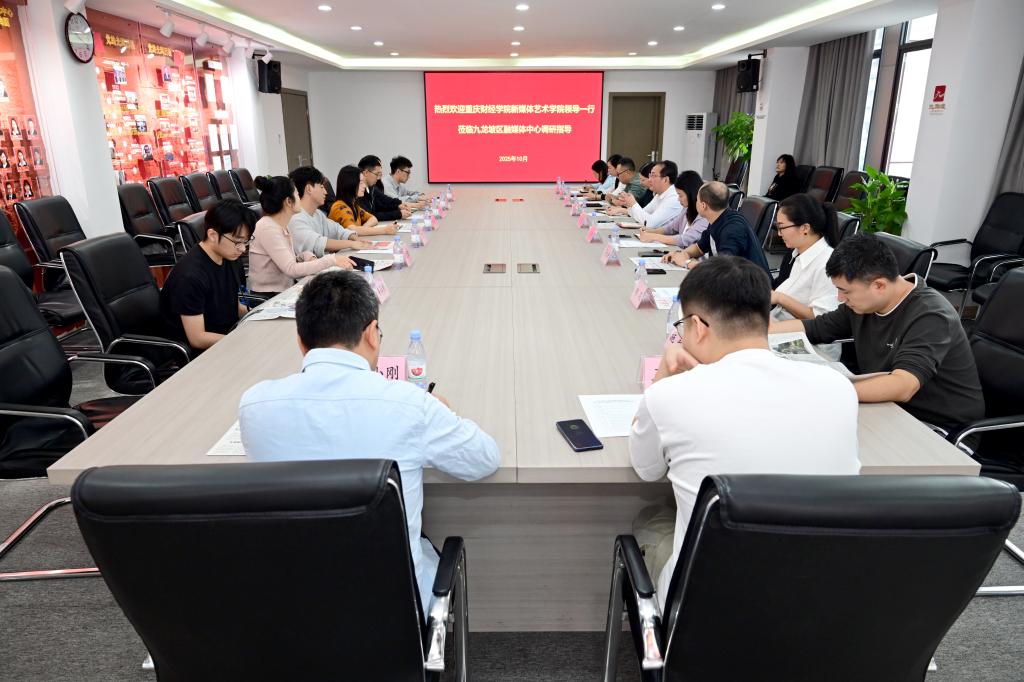 座谈会前,学院一行参观了九龙坡区融媒体中心办公室、报刊部、新媒体部、通联部和技术部等部室以及演播厅等核心区域。融媒体中心主持人详细介绍了中心的运营流程和机制,并展示了大数据舆情分析等技术应用。