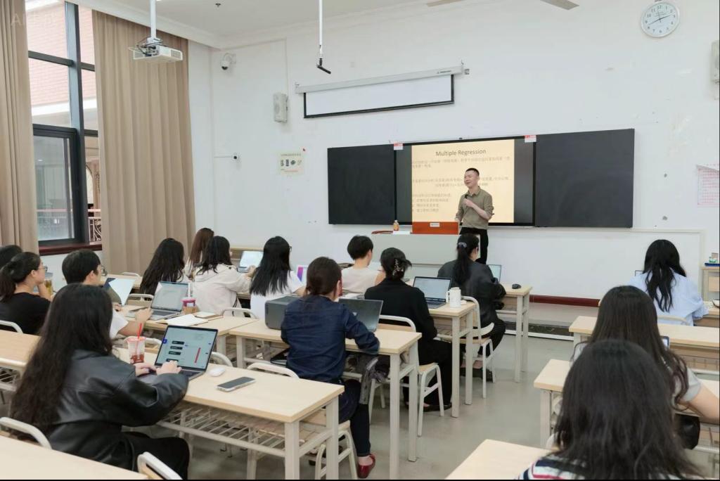 培训中,胡青青副教授结合《传播学研究方法》课程的跨学科改造经验,通过“案例分析+分组研讨”形式,引导教师针对自身授课课程梳理融合切入点,现场产出多份初步课程优化方案,为参训教师提供了跨学科课程设计的实用思路。