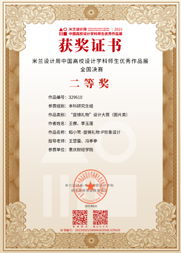 作为国内设计领域极具权威性与影响力的赛事之一,本届比赛吸引了全国1795余所高校的27万余件作品参赛,覆盖视觉传达、产品设计、数字媒体等多个赛道,本科研究生组作品更是集中了各大高校的优质创作力量,竞争尤为激烈。我校参赛作品以盘锦地域文化为核心,结合IP形象的创意性与实用性,将“稻作文化”元素与现代设计语言深度融合,既展现了地域文化的独特魅力,又具备市场转化的应用潜力,最终凭借鲜明的主题立意与精湛的设计呈现获得评审专家的高度认可。