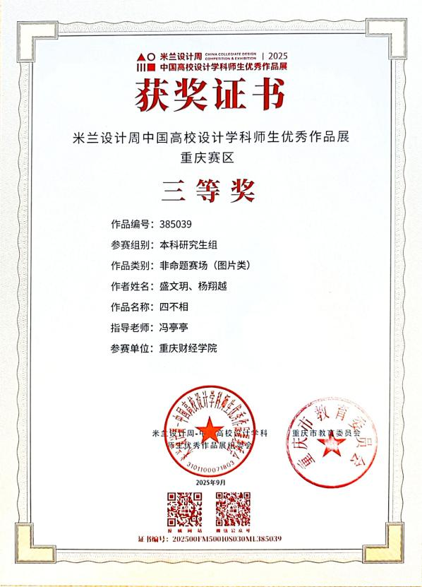 此次获奖,是我校持续深化“以赛促学、以赛促教、以赛促创”人才培养模式的又一成果。赛前,学校组织专业教师组建指导团队,从选题方向、创意构思到细节打磨提供全流程指导;参赛学子立足学科特色,在作品中融入社会需求与文化传承的思考,充分彰显了我校学子的专业素养与创新实践能力。