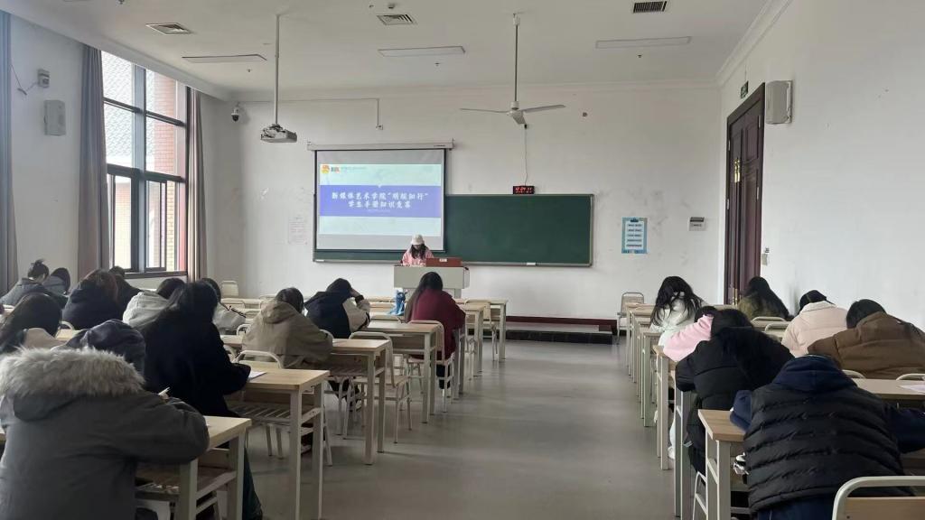 为深化学生对校规校纪的理解,营造风清气正的优良学风,2025年11月19日中午,新媒体艺术学院“明规知行”学生手册知识竞赛于教学楼1611、1612教室成功举行。本次竞赛吸引了学院众多在校生积极参与,现场气氛紧张而有序,一场别开生面的规则意识与知识储备的较量在此展开。