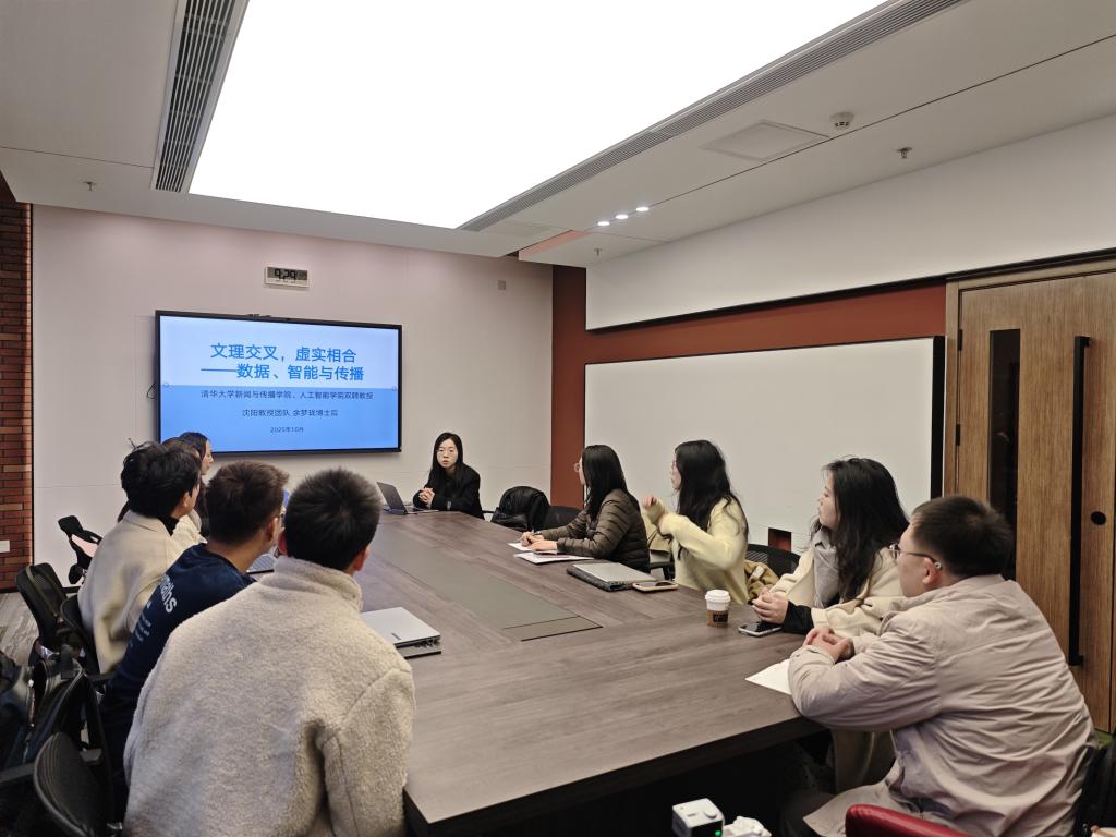 在清华大学,沈阳教授团队的余梦珑博士后以“文理交叉,虚实相合——数据、智能与传播”为题进行了专题分享。据介绍,该团队自2021年起布局人工智能与元宇宙相关研究。已构建规模可观的研究网络,覆盖大数据分析、AI系统开发、多模态创作等多个方向,成果覆盖AI诗歌、短视频、音乐及人形机器人等应用。