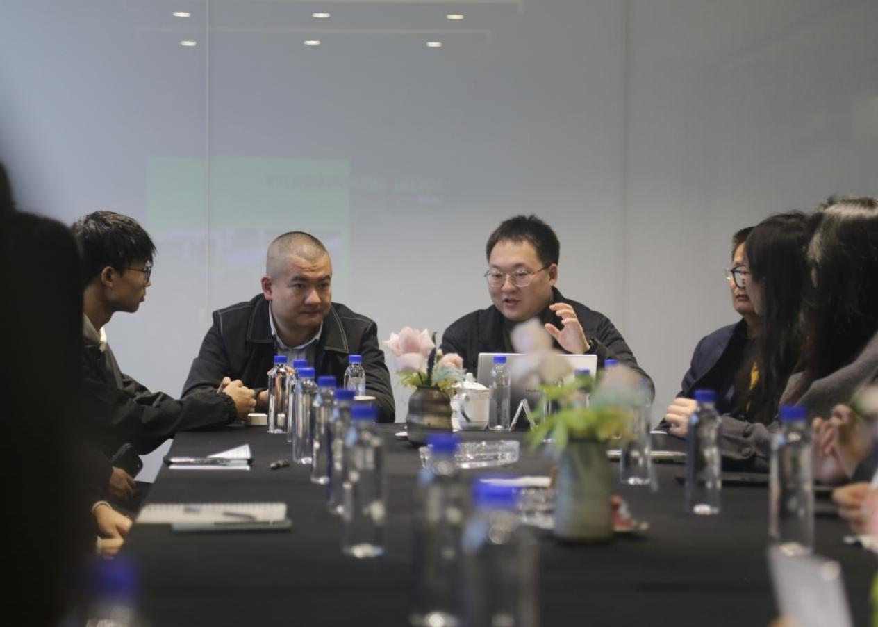 12月9日上午,参访团在中展励德国际集团重点考察绿色会展创新实践。负责人系统展示了公司操盘过的国家级展会案例,并详解其在展台设计搭建中采用的“新型绿色可回收材料”技术体系,该体系可实现材料重复利用。该企业负责人提出:“会展的本质是空间叙事与资源链接,其应用场景远超传统展厅范畴。”这一观点启发了在场学生对会展概念边界的重新思考。