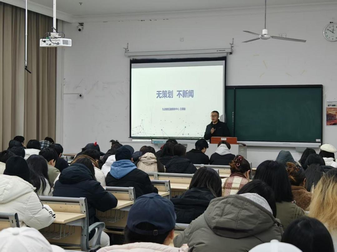 12月8日,九龙坡区融媒体中心的王炳瑜主任作为业界指导老师,为23级网络与新媒体专业1、3、4、5班的同学开展了一场线下新闻主题创作的经验分享与任务发布活动。