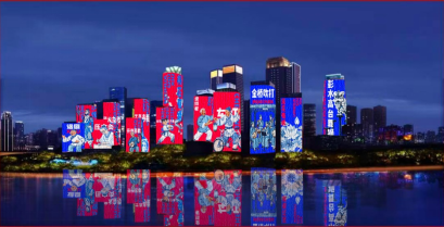 (图1 光影艺术系列作品《时空幻影》在两江四岸十联屏展播)
