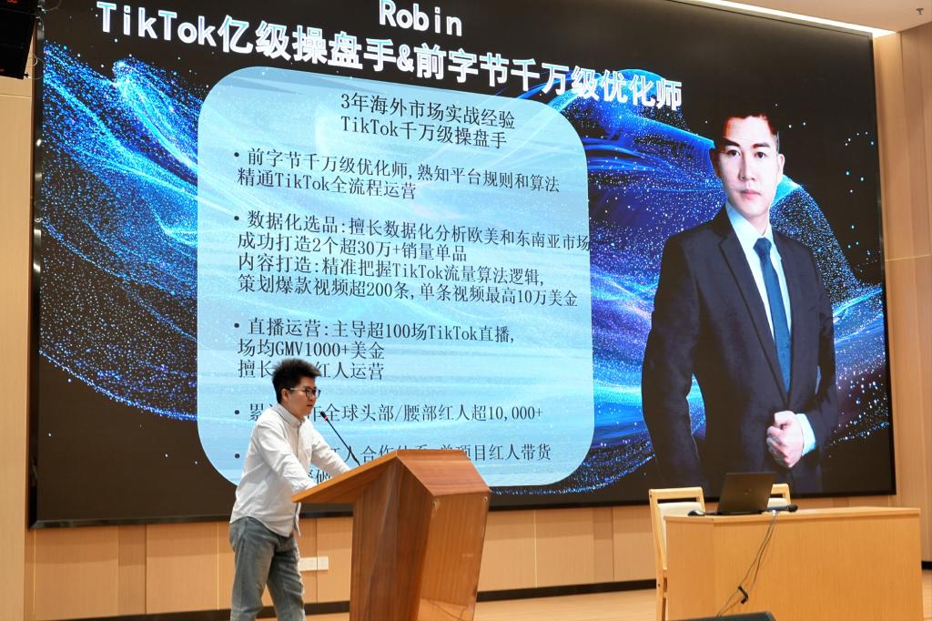 基地特邀跨境电商运营专家罗桂彬开展专题讲座。他围绕平台运营技巧、流量转化策略、跨境合规与用户管理等核心议题,结合真实案例进行系统讲解,帮助学生打通从理论到实战的关键环节。讲座现场互动频繁,学生积极提问,深化了对行业运作逻辑的理解。