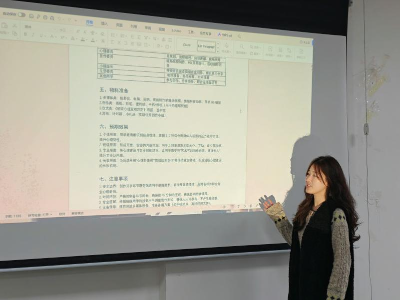 本次大赛紧密围绕“班级心理健康建设” 主题,采用心理班会策划方案提交与现场答辩相结合的形式,全方位检验心理委员的专业能力与实践水平。赛前,参赛心理委员围绕心理健康知识普及、朋辈互助活动设计等方向,撰写了完整的策划方案,并融入新媒体艺术专业特色,展现了丰富的创意与巧思。